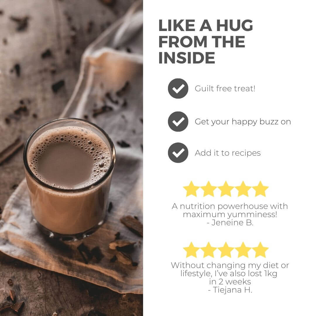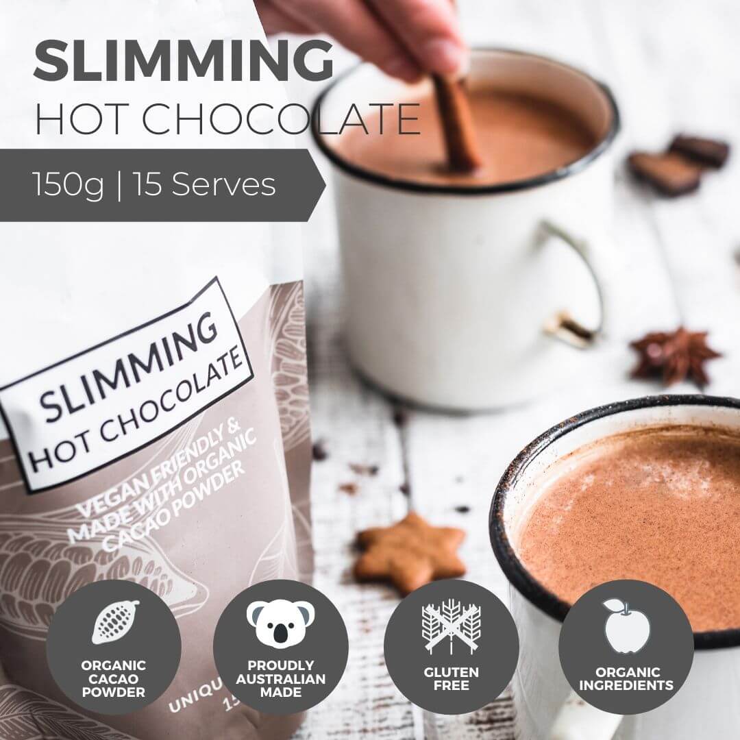 Our SLIMMING HOT CHOCOLATE is like a hug from the inside, it’s sweet, it’s chocolatey and it’s the perfect replacement for your current hot chocolate or coffee.